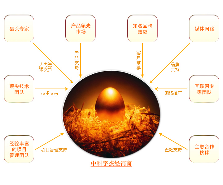 中科宇杰憑著多年的行業(yè)運(yùn)作積累和500多個(gè)節(jié)能項(xiàng)目管理經(jīng)驗(yàn),結(jié)合節(jié)能行業(yè)的現(xiàn)狀,創(chuàng)造性地提出“節(jié)能商學(xué)院”式的渠道發(fā)展政策,綜合性地為全國(guó)有志于投身節(jié)能事業(yè)的企業(yè)、人士提供一個(gè)節(jié)能行業(yè)企業(yè)的“孵化器”平臺(tái)。此平臺(tái)不但在渠道的政策方面,給予經(jīng)銷(xiāo)商靈活的操作方式,充分發(fā)揮不同類(lèi)型經(jīng)銷(xiāo)商的優(yōu)勢(shì)和長(zhǎng)處,還為經(jīng)銷(xiāo)商提供行業(yè)資訊、技術(shù)培訓(xùn)、商務(wù)操作、投融資、人力資源、客戶(hù)資源、互聯(lián)網(wǎng)支持等方面給予強(qiáng)有力的支持,讓你的投資不但有經(jīng)濟(jì)收益,還能在企業(yè)經(jīng)營(yíng)方面得到諸多的收益。中科宇杰不但自己做大做強(qiáng),也幫助我們的合作者成長(zhǎng),共同成為節(jié)能行業(yè)的翹楚。