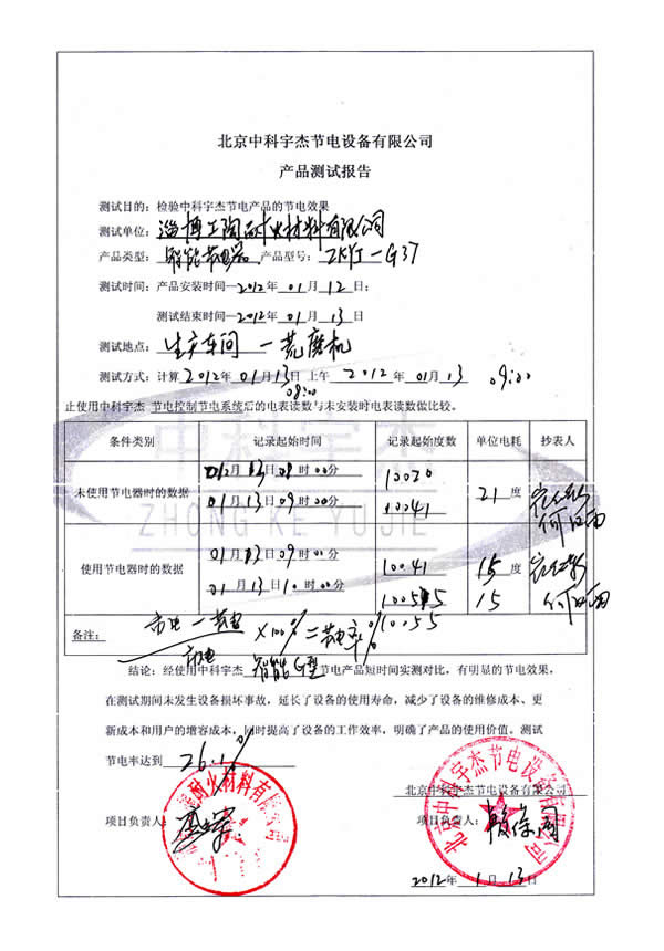 經(jīng)過我們公司工程師的分析,有較大的節(jié)電空間,經(jīng)測(cè)試安裝,幾臺(tái)設(shè)備的節(jié)電效果分別達(dá)到21.7%、25.9%、26.1%和40%。投資回報(bào)期1.5年。
